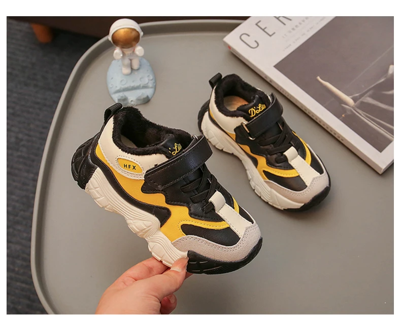 أحذية رياضية سميكة دافئة بتصميم للأطفال الصغار والبنات والأولاد برباط أحذية رياضية كاجوال مخططة للأطفال الصغار مناسبة للتنس من عمر 3 إلى 5 سنوات في الشتاء