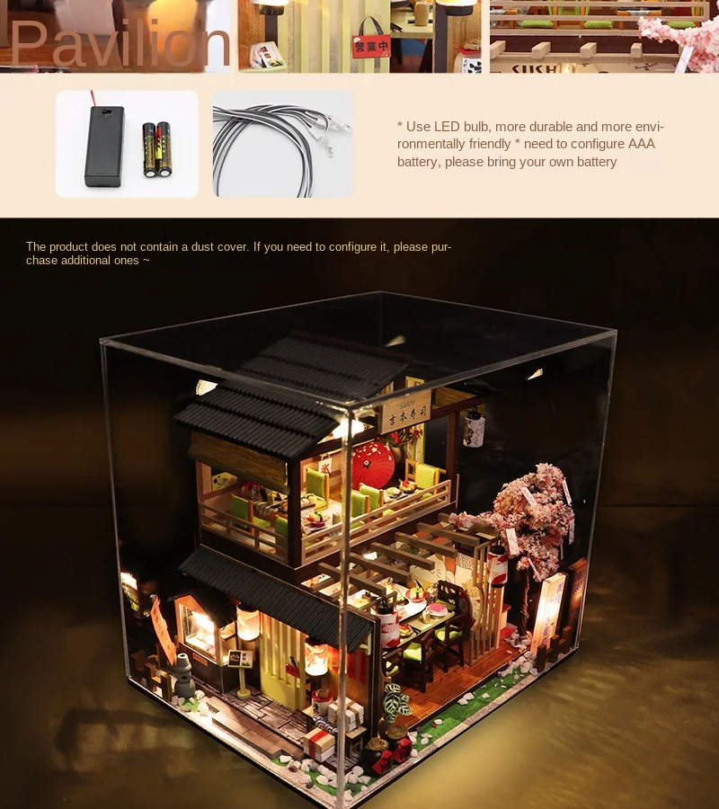 بيت الدمية مع غطاء غبار منزل مصغر DIY بيت الدمية الخشبي مصغرات ألعاب الأطفال هدايا عيد الميلاد للفتيات الديوراما 1 24 M2132z