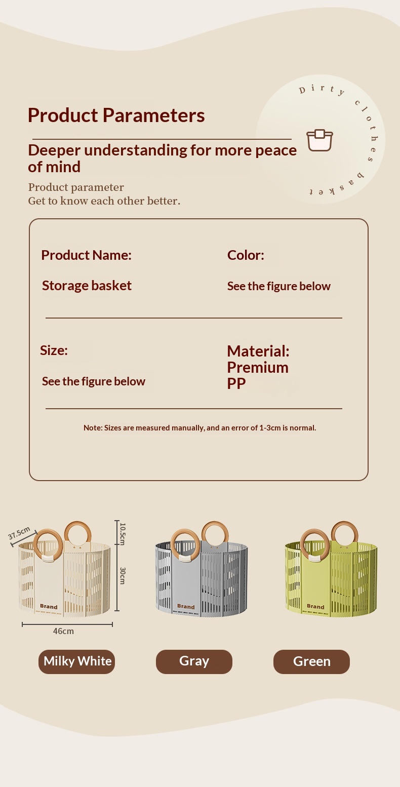 Color: Milky White ● Laundry Basket, Gray ● Laundry Basket, Green ● Laundry Basket