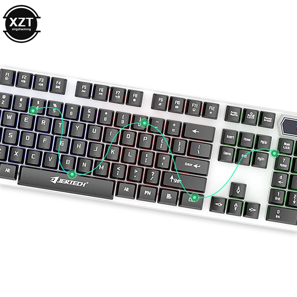 مجموعة لوحة مفاتيح وماوس كمبيوتر مضيئة مزودة بمنفذ USB سلكي للألعاب بإضاءة خلفية ملونة ولوحة مفاتيح وماوس ميكانيكية