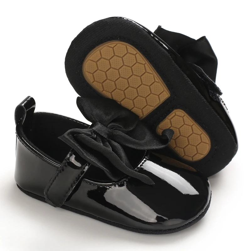 حذاء أطفال بلون واحد، حذاء أطفال حديثي الولادة بمعمودية للبنات بنعل مطاطي غير قابل للانزلاق حذاء أميرة على شكل فيونكة للأطفال حذاء عصري