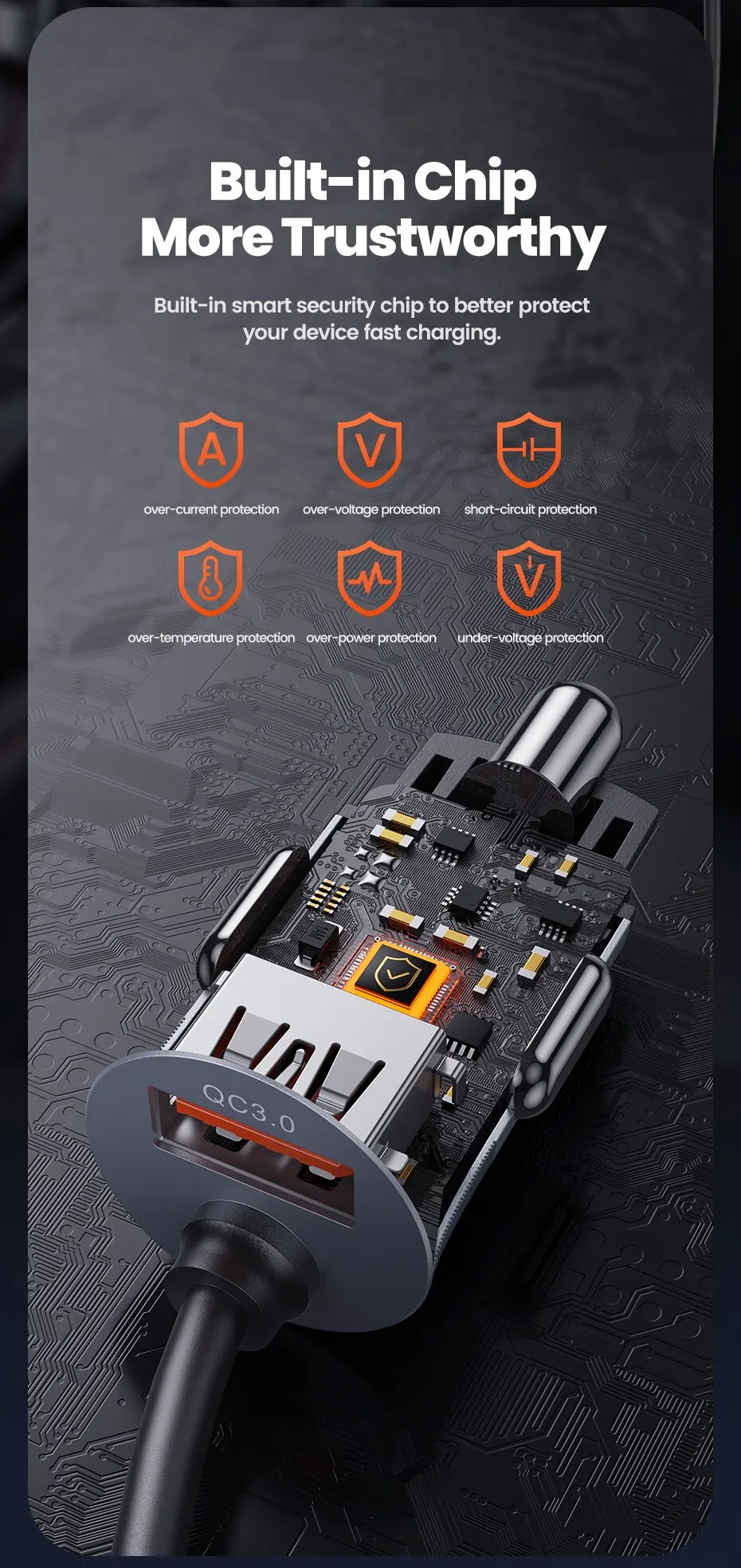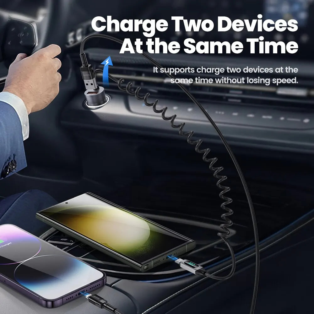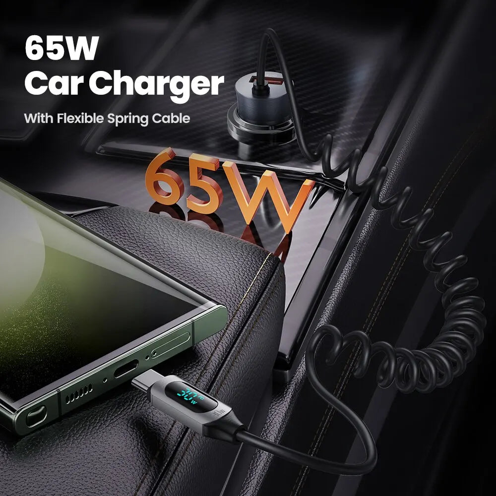 ✅شاحن سيارة بقوة 65 وات مع كابل زنبركي مرن