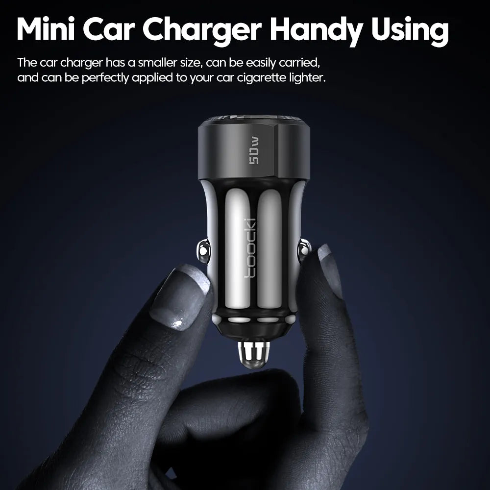 شاحن سيارة USB من toocki سريع الشحن 50 وات PD من النوع C شحن سريع USB C شاحن سيارة للهاتف 12 فولت 24 فولت لهاتف iPhone 1413 12 Xiaomi 13 12