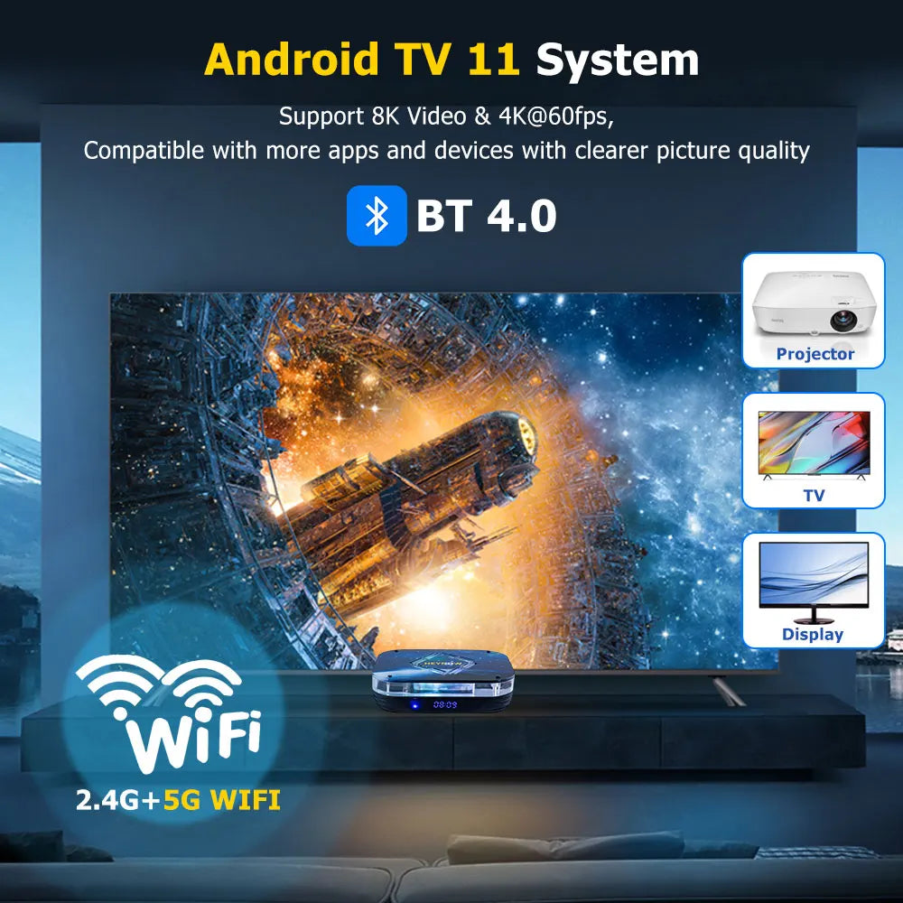 تم تجهيز TV Game Box بأحدث نظام تشغيل Android 11.0، وأداء مثالي بدون تخزين مؤقت وواجهة سلسة خالية من التأخير عند تحميل مقاطع الفيديو ولعب الألعاب والتصفح، مما يوفر لك تجربة مستخدم ممتازة