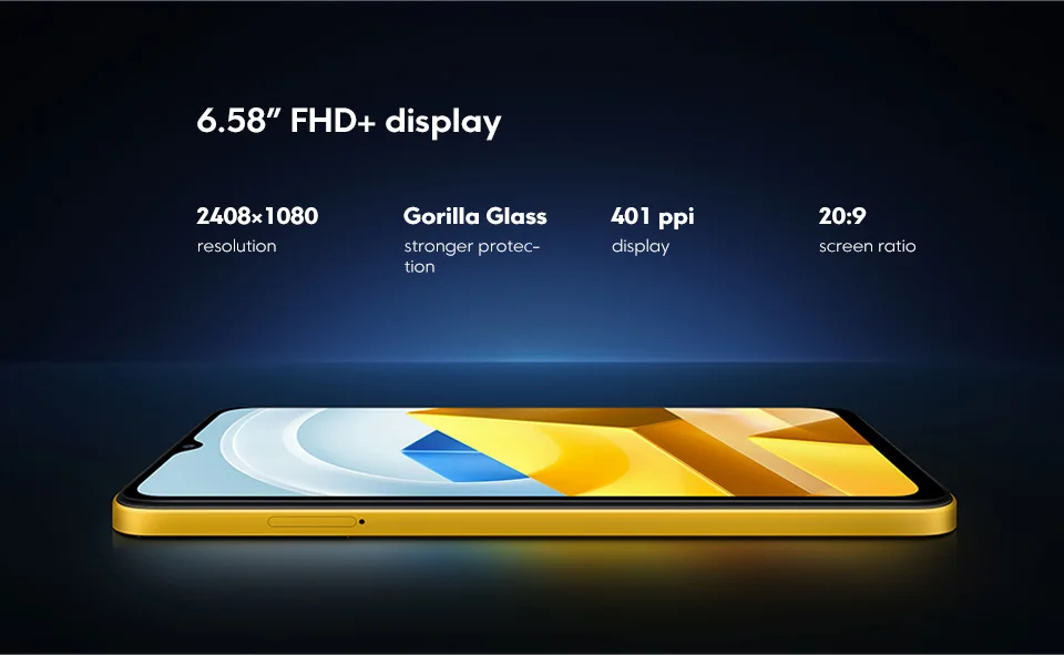 الشاشة ---------- شاشة DotDrop مقاس 6.58 بوصة بدقة 2408×1080 FHD+، ومعدل تحديث 90 هرتز