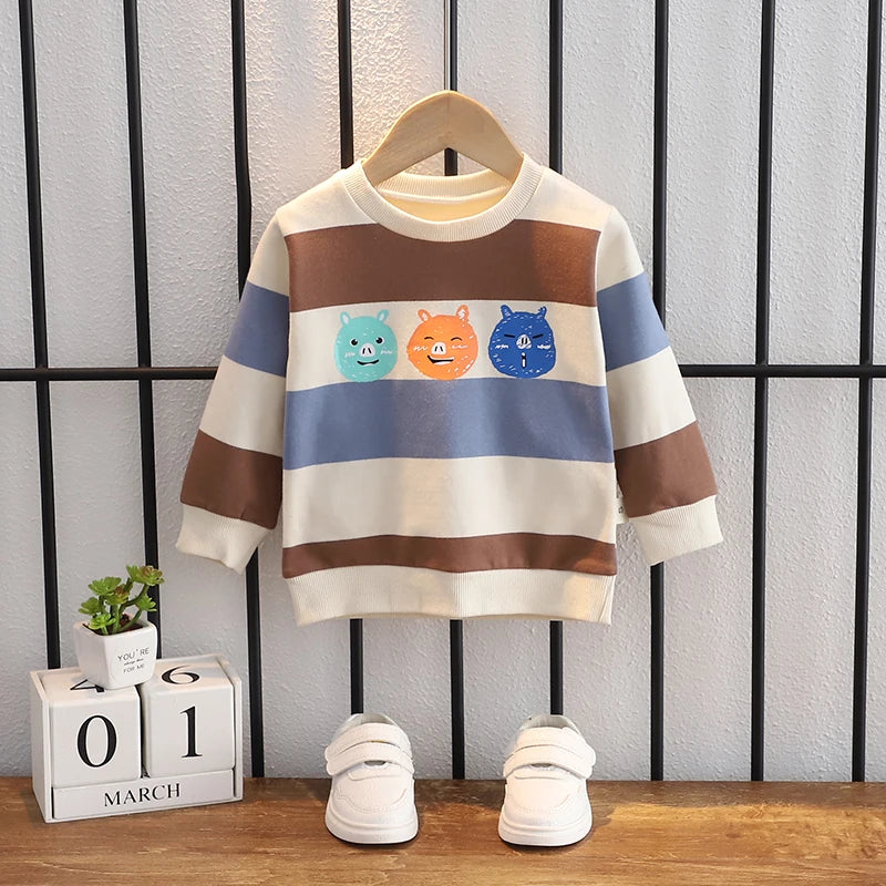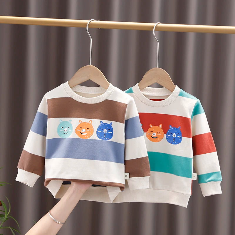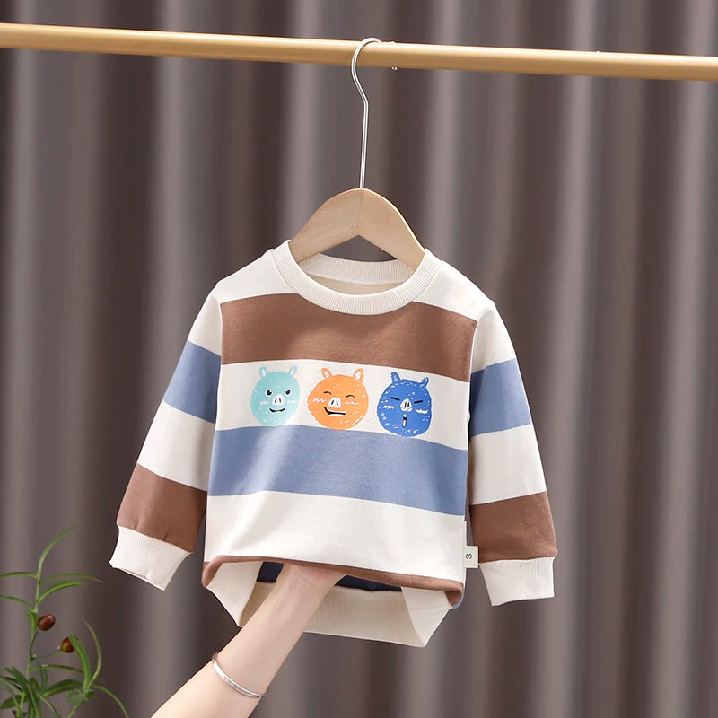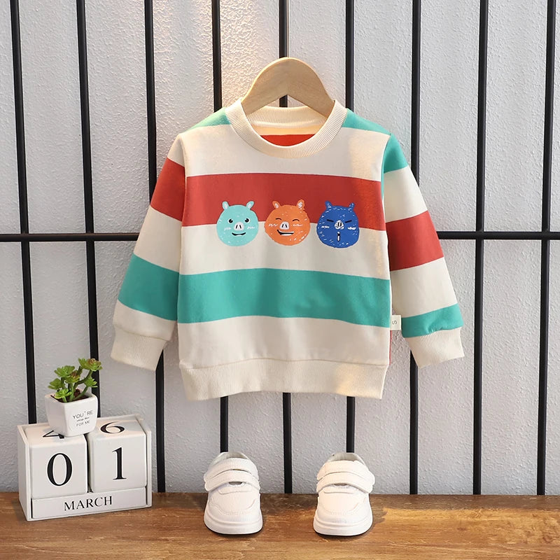 XWT-ملابس أطفال ربيع خريف أولاد وبنات ملابس أطفال أولاد وبنات بأكمام طويلة مطبوعات حيوانات كرتونية لطيفة