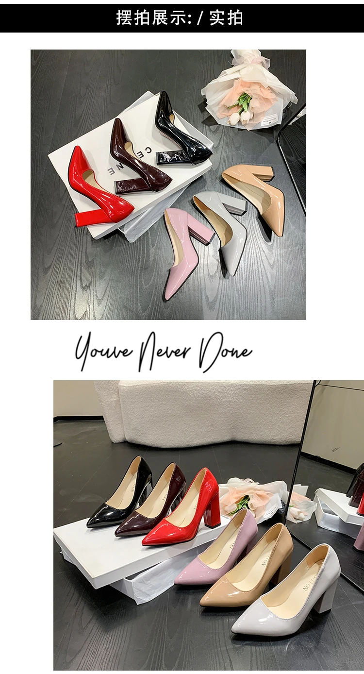 Aphixta 3.94Inch Chunky Heels Pumps Women Shoes Wine Red Patent Leather Sexy Party Official Leisure Plus Szie 33-46