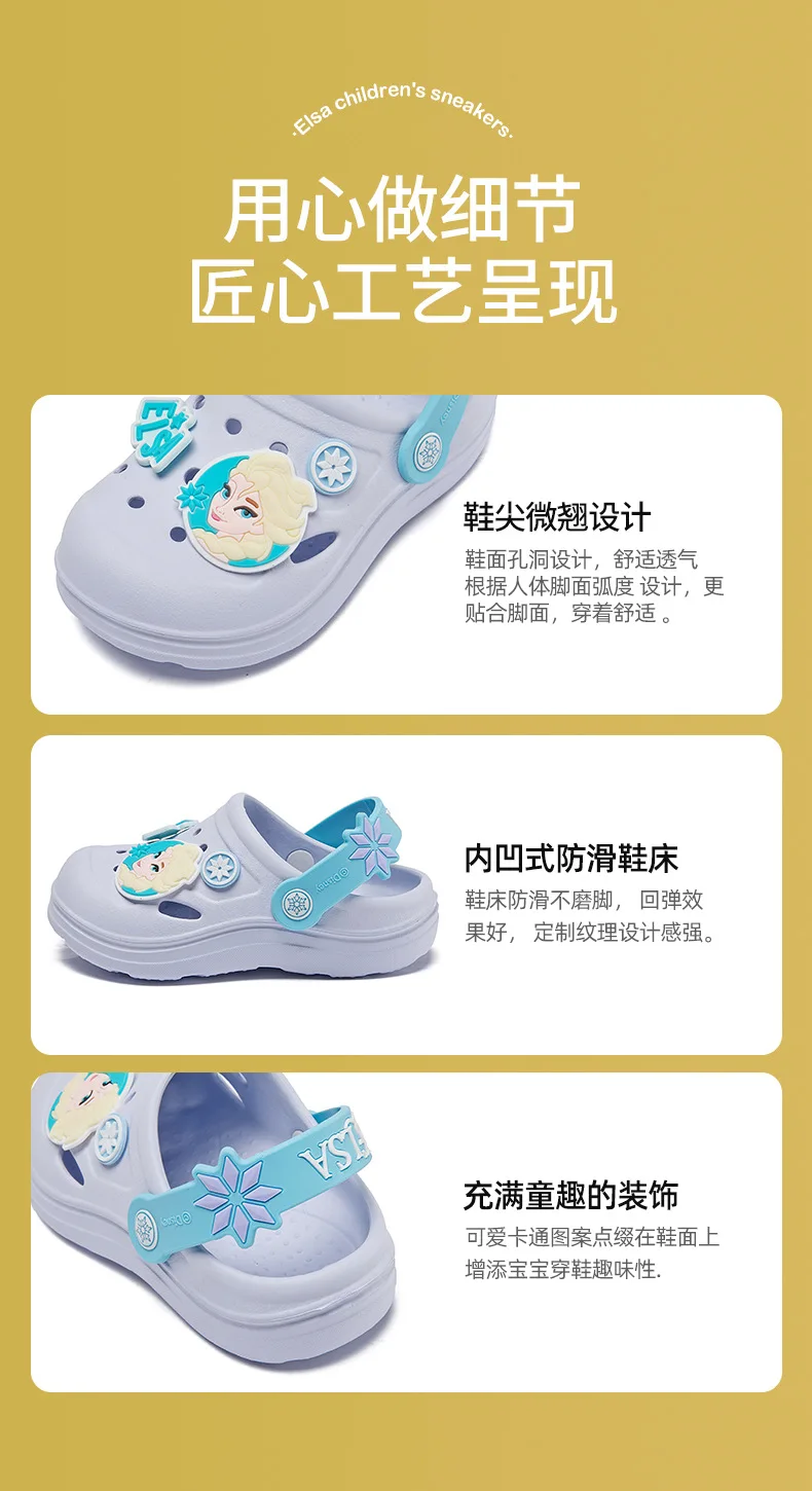 Disney Children's Casual Shoes Frozen Baby Indoor Home Anti slip Princess Elsa Cartoon Beach Blue EVA Summer Shoes Size 15-20