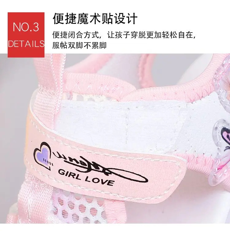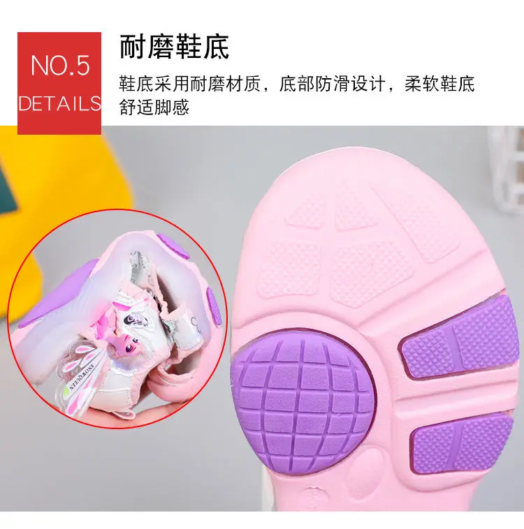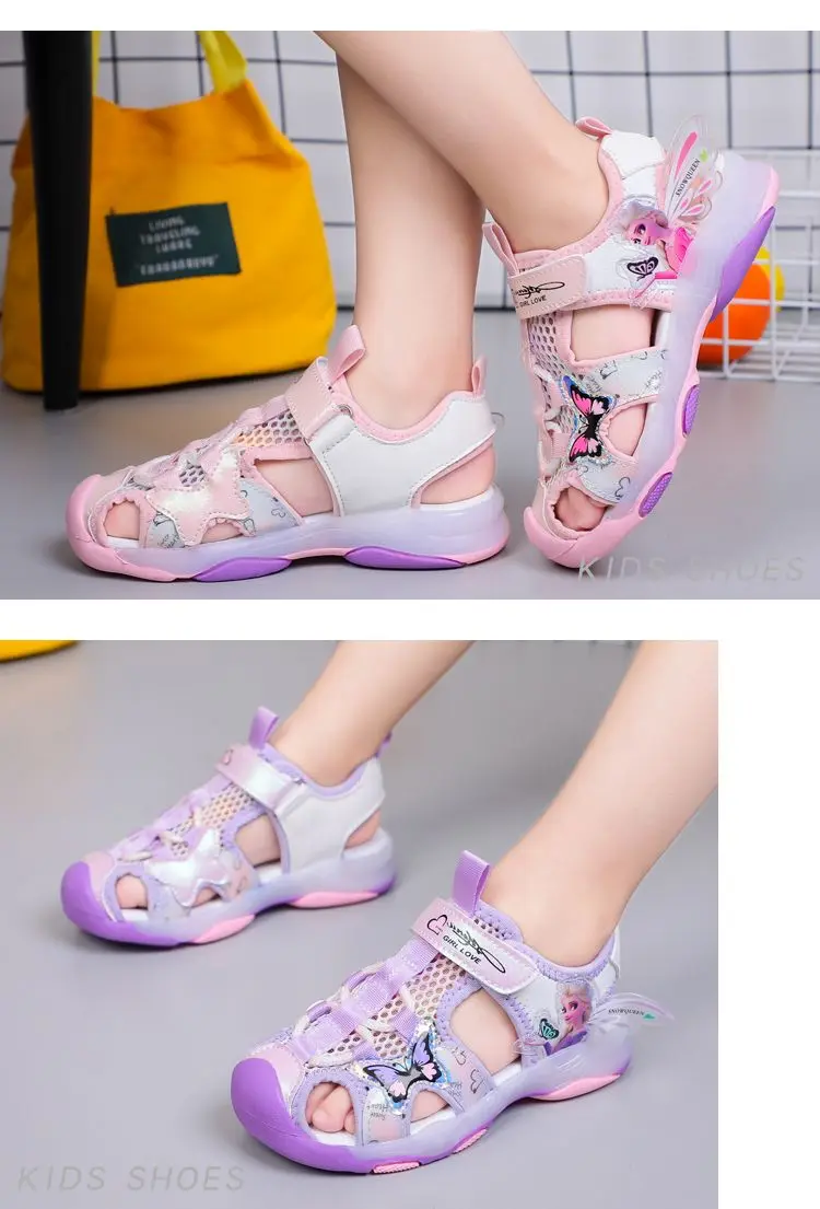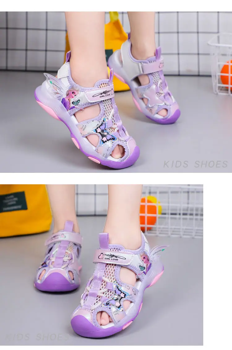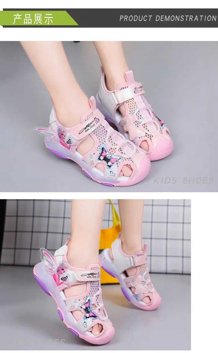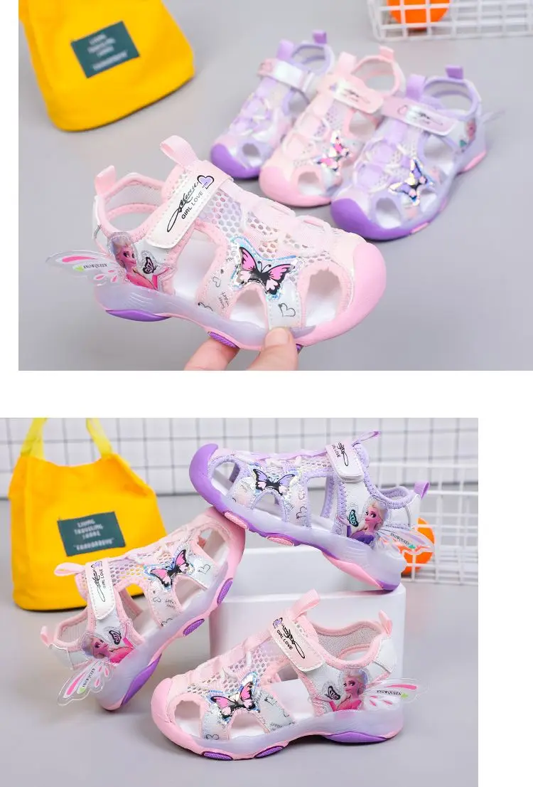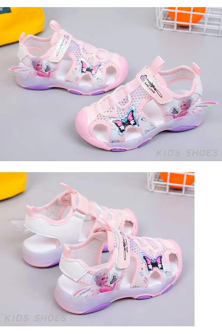 Disney Girls' Sandals Lights Summer Style Children's Anti-skid Soft Soles Elsa Princess Carton Shoes Pink Purple Size 23-36