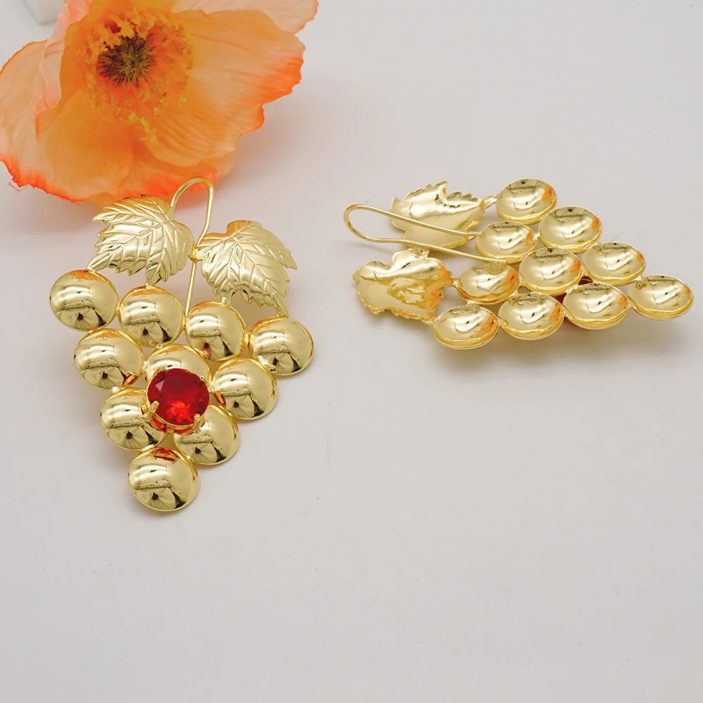 Fashion Purple Crystal Grape Leaf Earrings Elegant Smooth Irregular Geometric Fruit Gold Color Copper Drop Earrings For Women
