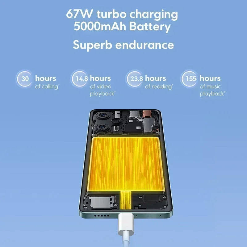 67W turbo charging, fast with an oversized 5000mAh battery, a longer battery life that allows you to use it at will.