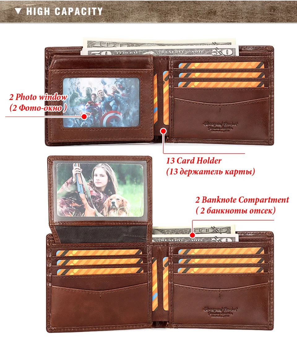 Men's Wallet Genuine Leather Fashion Wallet Men RFID Blocking 2 Fold Business Credit Card Holder Coin Purse Man