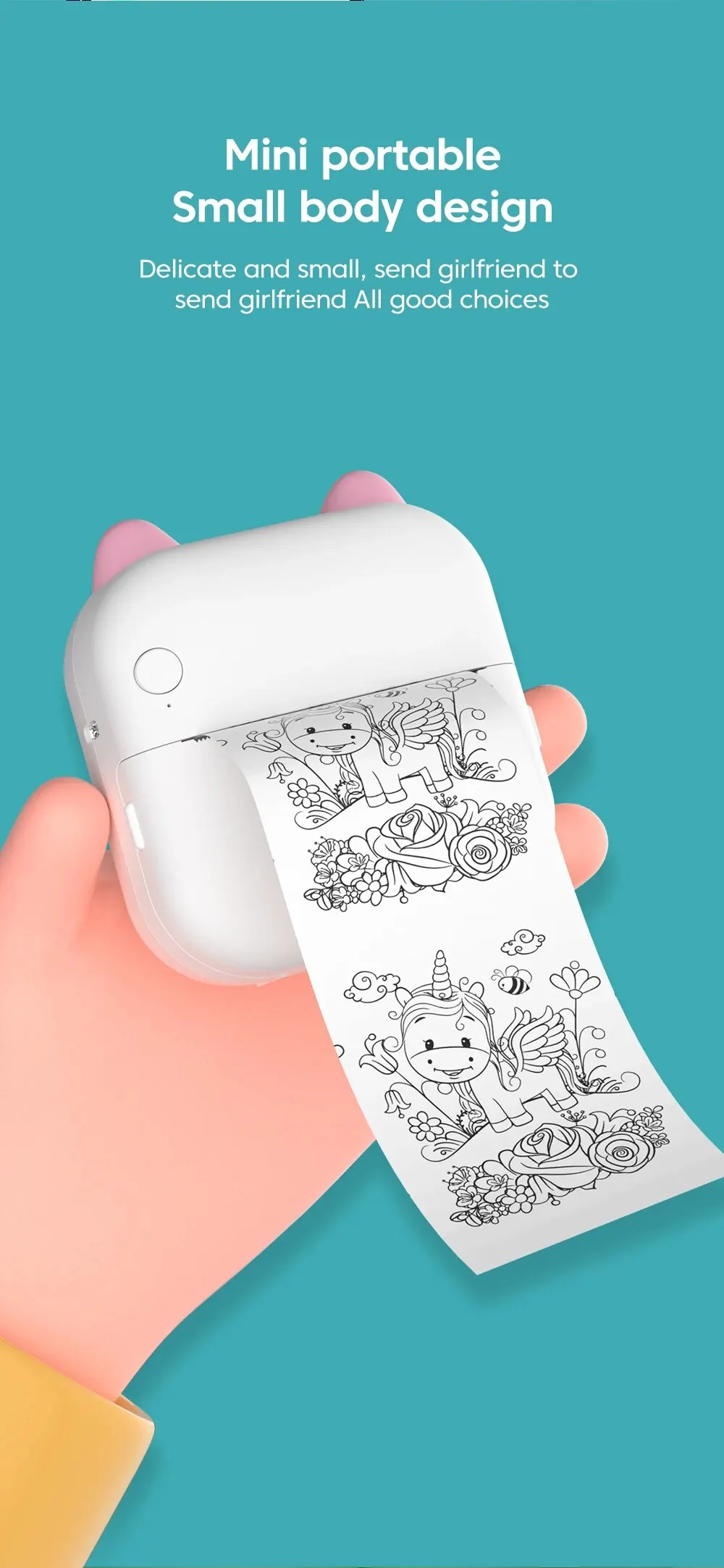 • Portable Design :The mini printer is small and lightweight, making it easy to carry around and use on-the-go.