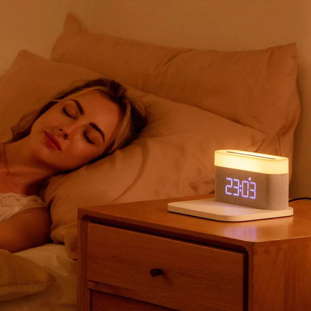 Promise Dimming Atmosphere Light Table Lamp Desk Small Alarm Clock With Mobile Phone Fast Wireless Charging Room Decoration Gift