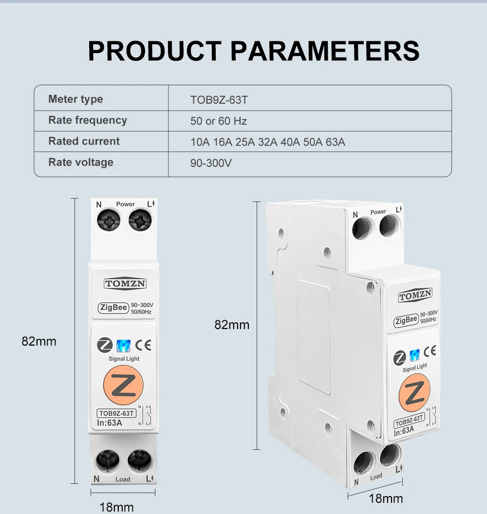 TOMZN Zigbee 63A Smart Switch Energy Meter Kwh Metering Monitoring Circuit Breaker Timer Relay MCB TUYA smartlife protection