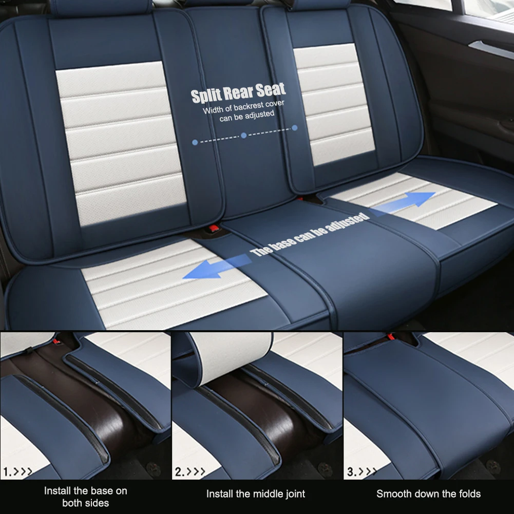 Universal PU Leather Front&Rear Split Bench Protector Full Set Car Seat Covers Four Season Fit Most Car SUV Car Accessories